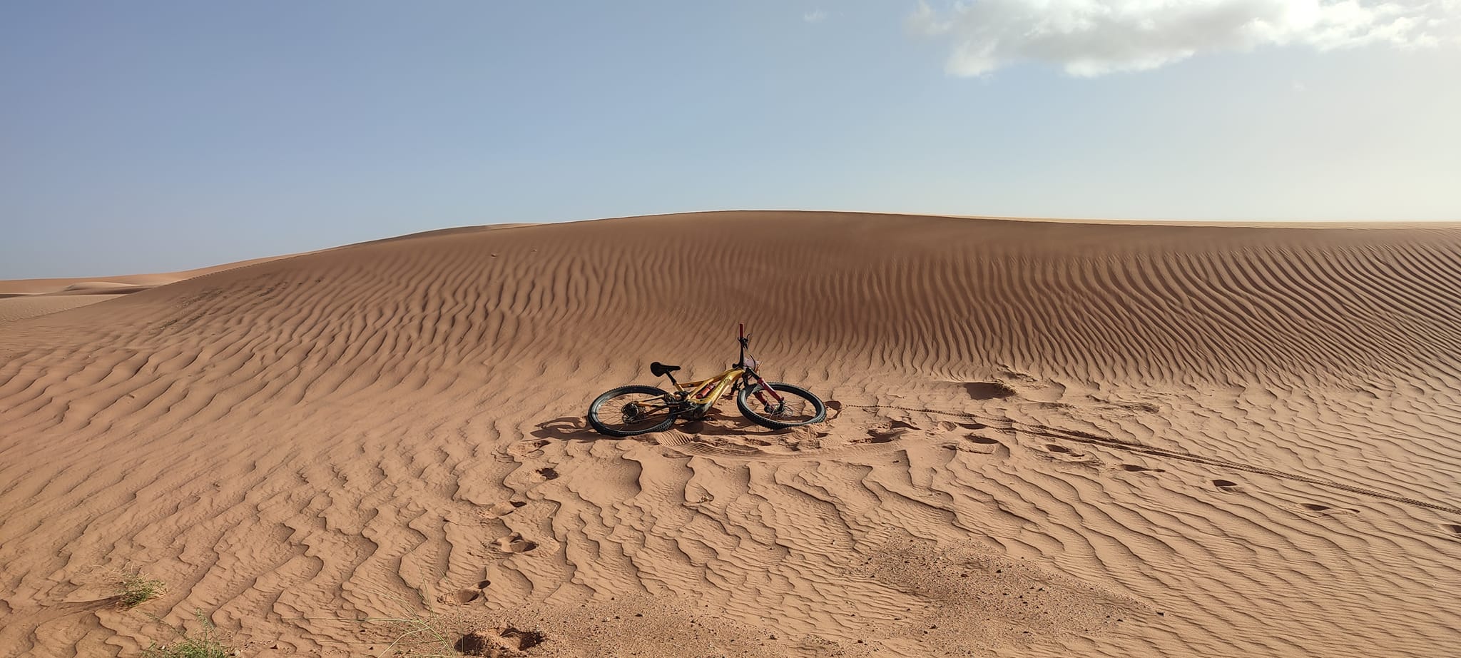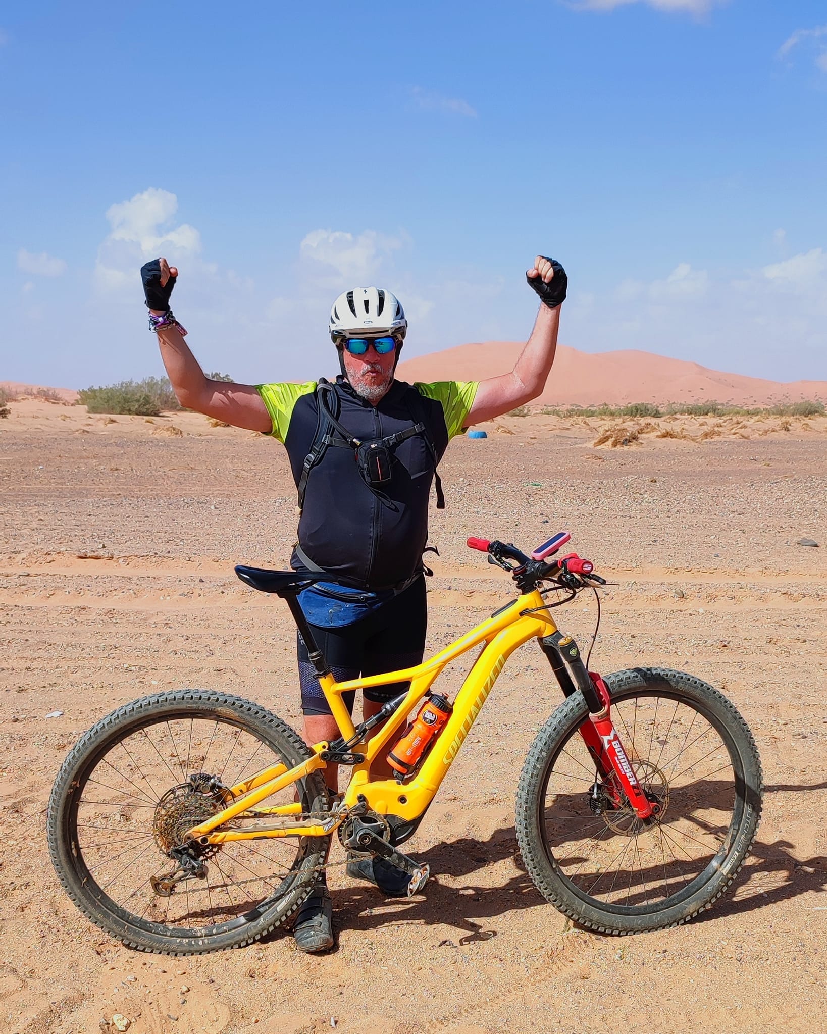 Una tercera etapa donde ya nos fuimos dirección desierto, larga con mucho viento y donde las primeras lenguas de arena van apareciendo. Un transfer de unas horas hasta Erfoud donde durante dos días nos movimos por la gran Duna de Erg Chevi…. típico y tópico sitio de vacaciones. No faltó las tardes de desierto , de cervecitas, de largas y extensas conversaciones sobre bicicletas, etapas, esfuerzos etc.