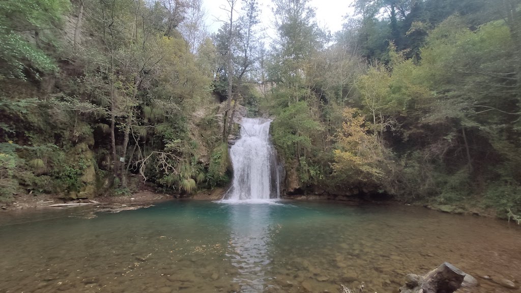 La ruta es muy muy fácil, muy bonita, plana… y con un entorno privilegiado. Antes de llegar a Sant Joan de les Abadeses.. visitamos un grog muy bucólico… el de Malatosca, encantador. De ahí a desayunar y un poco de turismo por el pueblo visitando la abadía. Seguía sin llover y nosotros seguíamos sorprendidos.